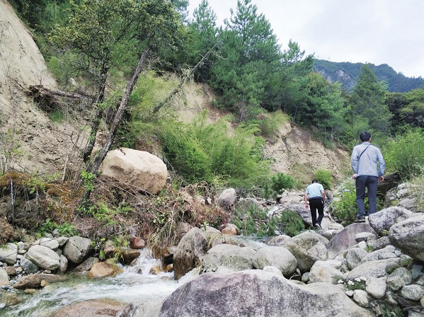 西藏工作组在林芝市调查冬如村暴雨泥石流可动物源量。 资料图片