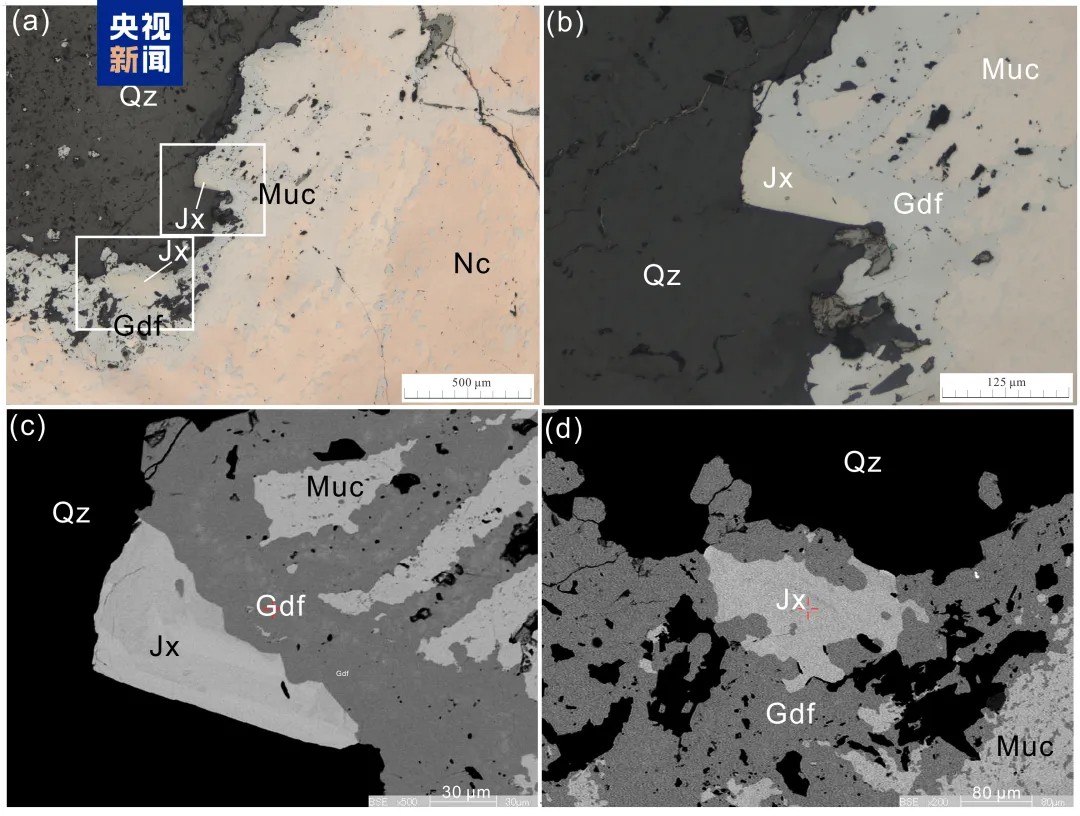 中国地质科学院深部矿产勘查理论与技术研究室主任严加永:金秀矿的化学式是镍、铋、硫、锑、砷,它本质上是对早期形成的含镍矿物进行置换,导致了晶体结构重新排列,从而结晶出了一种全新的结构稳定的矿物。
