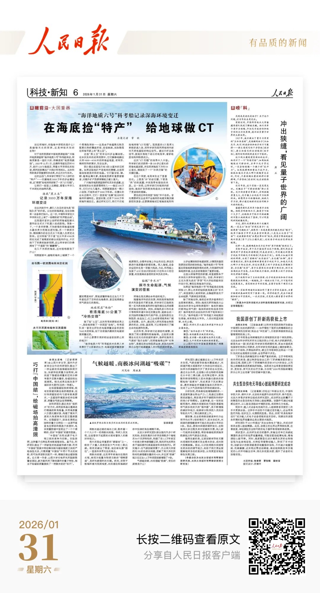 人民日报:在海底捡“特产” 给地球做CT(瞰前沿·大国重器) “海洋地质六号”科考船记录深海环境变迁