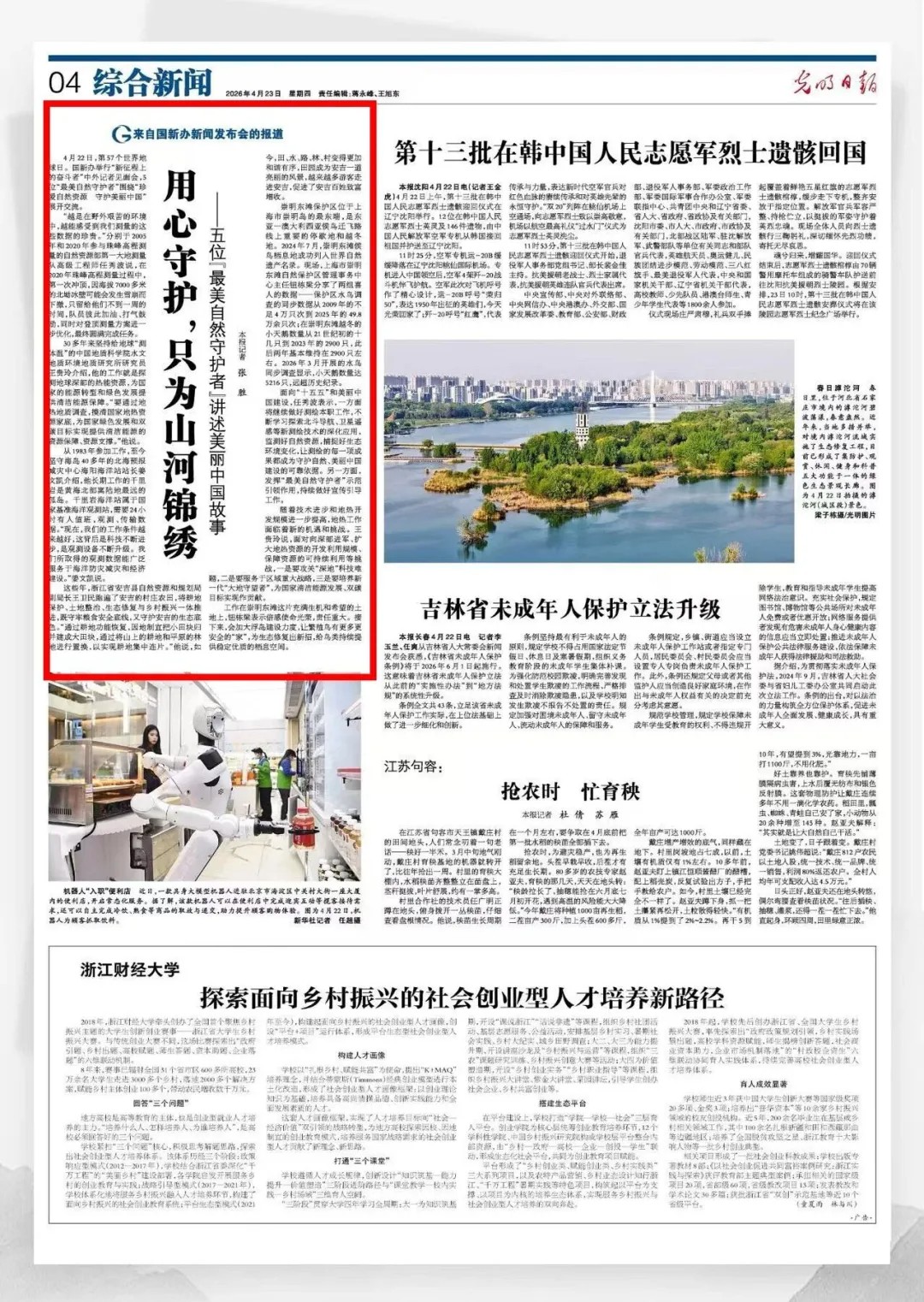 光明日报:王贵玲等五位“最美自然守护者”讲述美丽中国故事